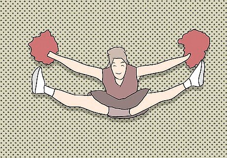 Perfect the basic cheerleading skills. You need to have an extremely hyper-extended toe touch, a high pike, a strong herkie, around the world, tuck, double hook, hurdler, and spread eagle. You need to be on top of all of your jumps so they are strong, hyper-extended, and high. To make them strong, build leg muscle with squat jumps, squats, and straddle leg lifts. This also makes them higher. To hyper-extend them, you need an excellent over-split, have your head flat on your knees when in a pike, and just be extremely flexible. Don't forget a strong core! Practice your kicks too. You need to have perfect kicks with straight legs and pointed toes. Your motions should be stronger than anything, snappy, straight, and strong.