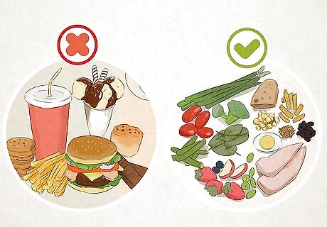 Eat a healthy diet. Certain foods, such as those high in carbohydrates and sugar, can cause you to become sluggish and negatively affect your mood. Foods that can improve your mood are those that are low in fat and release their energy slowly. These foods give energy for sustained periods of time and do not carry the risk of weight gain, bloating, and irritability; they can also lead to stronger hair and nails, which can improve your overall self-image. Avoid eating foods that are sugary, fried, or overly processed. Eat more nuts and seeds, legumes, and fresh fruits and vegetables, particularly produce with vibrant, rich colors.