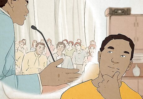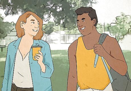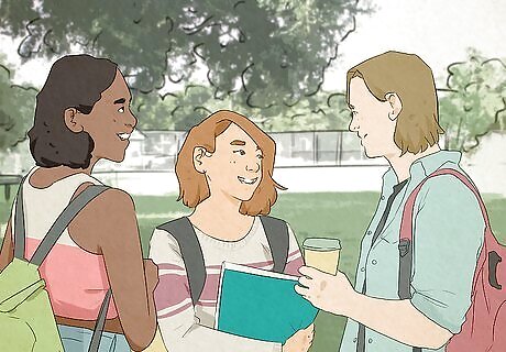 Smile and laugh as much as possible. As easy and obvious as it sounds, smiling, even when you are forced to do it, can lower stress and make you feel better about yourself. Furthermore, people will see you as approachable and trusting.