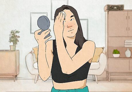 Apply make-up based on your face shape. Although makeup is not for everyone, those who use makeup can improve their self-image by becoming more educated on how to use makeup to improve their confidence in their looks. Just as with clothes, the goal is to match your shape (in this case face shape) and direct the eyes to the features you want to accentuate. To determine your face shape, pull your hair back and look in the mirror at your hairline and chin: Heart-shaped faces (broad forehead and pointed chin) should draw focus away from their prominent chin and cheekbones with soft tones on the face and color on the lips. Rounded faces (forehead and lower face are the same width) should help add definition using makeup on the cheeks and eyes (eg, using smoky eye shadow). Square faces (Angular jawbone and hairline) should use soft colors on the skin, mouth, and eyes to soften facial features. Oval faces (forehead and lower face are same width with longer sides) should apply blush with horizontal strokes and define their eyes and lips to reduce the length of their face.