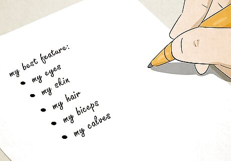 List your best features. Write down the 3 physical features that you think are most appealing to you, using a sentence to describe each one. For example, “My long curly hair - especially just after I leave the hair salon and looks so full and bouncy” or “My broad shoulders, especially when my girlfriend puts her head on my shoulder for comfort.” This exercise shows that everyone has features they can be proud of. These features can be accentuated by clothing choice.