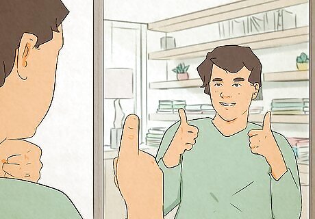Work on positive re-framing. If you find yourself having negative thoughts about the way you look, stop yourself and re-frame it as something positive. For example, if you think your nose is too big, stop and remind yourself that you have a strong, unique profile. If you think you are overweight, think about your awesome curves and plan what lifestyle changes you can make. Reader Poll: We asked 213 wikiHow readers if they think mantras and affirmations help boost their mood, and 71% of them said yes. [Take Poll] Repeating a mantra or affirmation can help you feel more confident!