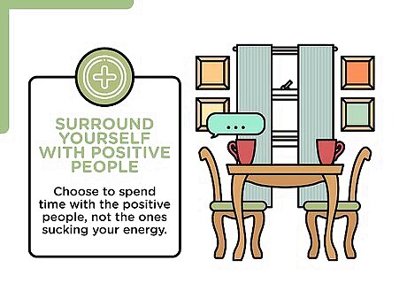 Surround yourself with positive people. Make friends with people you admire for various reasons: because they are happy, kind, generous, successful at work, or successful in other ways. Join forces with those who have achieved things you want to achieve, or who are on their way to a common goal. Don't let jealousy get in your way: nobody's success is a threat to yours. When making friends with someone, ask yourself if the person makes you feel motivated, positive, and confident, or if they make you feel tired, overwhelmed, or incompetent. Choose to spend time with the positive people, not the ones sucking your energy. If you have friends or family members who always make you feel bad about yourself, limit the time you spend with them. Also, make sure to identify relationships that are not helping you to move towards your goals, that stress you out, or that require too much of your time and energy without being reciprocal. Look for mentors among the people you admire. If you think you could learn from someone, ask for their advice. EXPERT TIP Moshe Ratson, MFT, PCC Moshe Ratson, MFT, PCC Marriage & Family Therapist Moshe Ratson is the Executive Director of spiral2grow Marriage & Family Therapy, a coaching and therapy clinic in New York City. Moshe is an International Coach Federation accredited Professional Certified Coach (PCC). He received his MS in Marriage and Family Therapy from Iona College. Moshe is a clinical member of the American Association of Marriage and Family Therapy (AAMFT), and a member of the International Coach Federation (ICF). Moshe Ratson, MFT, PCC Moshe Ratson, MFT, PCC Marriage & Family Therapist Being a positive person can help your relationships. Make an effort to build strong connections with the people who matter most. Bringing humor, kindness, compassion, and fun into your interactions can make a big difference.
