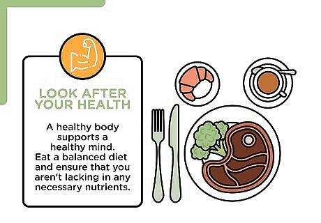 Look after your health. A healthy body supports a healthy mind. Eat a balanced diet and ensure that you aren't lacking in any necessary nutrients. Establish the cause of any problems you may experience, such as a lack of energy or a lack of concentration and deal with them by discussing with a doctor, nutritionist and related health professionals. Get plenty of exercise too but make your fitness choices according to what you enjoy.