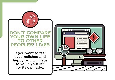 Don't compare your own life to other peoples' lives. Unfortunately, many people measure their own success by comparing it to the success of those around them. If you want to feel accomplished and happy, you will have to value your life for its own sake. Many people have the tendency to compare the low points of their own lives with the high points of other peoples' lives. Remember that no matter how perfect somebody's life may seem, behind closed doors everybody deals with tragedy, insecurity, and other difficulties. Pay attention to and limit your use of social media to help you remember this. Rather than comparing yourself with people who are "better off" than you, think about all of the people who are homeless, chronically ill, or living in poverty. This will help you appreciate what you have rather than feeling sorry for yourself. Try engaging in volunteer work to help make this more apparent. This can help to boost your happiness and confidence as well.