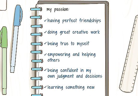 Identify your passions. Before you can achieve success, you will have to define what success means to you — and no one else can do that for you. While it may take years to realize what you want to do with your life, identifying your passions, interests, and values will help you set goals and give your life a sense of meaning. If you have trouble identifying these things, then ask a friend or family member to help you. Ask yourself the following questions: What do you want your legacy to be? How would you like to be remembered by others? How do you want to make your community a better place? What are some favorite subjects of interest in your life? For example, think of subjects you enjoyed studying in school. Ask why you liked them. For instance, you may have loved musical theater. Think: was it because you loved the music, or was it because you loved working with a big group towards a common goal?