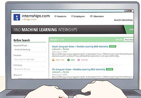 Apply for a machine learning internship. While personal projects and competitions are fun and look great on a resume, they may not teach you the business-specific machine learning skills required by many companies. So you can gain this experience, look for internships or entry-level jobs related to product-focused machine learning. Look for relevant internships on websites like Internships.com.