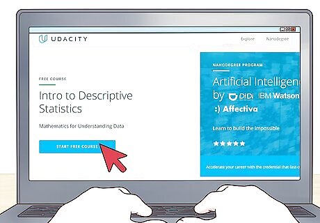 Work through online data exploration courses. Before you learn skills specific to machine learning, it’s important to have a solid foundation in data analysis. This includes subjects like statistics, which will help you understand data sets, and feature engineering, which will help you make data-based algorithms. Some high-quality online courses related to these subjects include: Intro to Descriptive Statistics from Udacity, which will teach you how to communicate information about data sets. Intro to Inferential Statistics from Udacity, which will teach you how to understand and analyze data sets. Getting and Cleaning Data from Johns Hopkins University, which will teach you how to obtain and optimize data sets. Feature Engineering for Machine Learning from Udemy, which will teach you how to process and manipulate data variables.