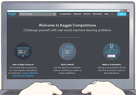 Participate in Kaggle knowledge competitions. Kaggle is a dataset database that hosts a variety of machine learning challenges. Some of these are official competitions, which offer monetary prizes, and some are free competitions that simply provide experience. To start out, try completing the beginner competition Titanic: Machine Learning from Disaster.
