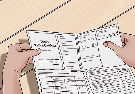 Obtain a Class 1 Medical Certificate. Before you can even think about getting in the cockpit, you will have to pass a number of tests related to physical well-being, eyesight, medical history, and other important factors. The doctor who administers your examination needs to specialize in aviation medicine. Book an appointment and complete a medical certificate application form before going in for your test. The examination can take up to four hours. There are set charges for all examinations and tests. Ask your medical examiner for specifics. The medical certificate application form includes facts about your medical history, results of previous medical examinations and whether you have ever been assessed as unfit or had a medical certificate suspended or revoked. A medical certificate can be issued the same day as the exam if you meet all the requirements. Most Class 1 medical certificates are valid for 12 months. If you are 60 or older, however, the certificate is valid for 6 months.