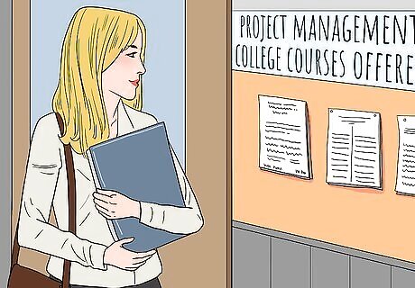 Take 2–3 college-level classes to learn about project management. If you aren’t a college student, you will still need some relevant education to land a project manager job within the IT field. Enroll at a local community college that offers project management courses, and take a couple of courses. Focus on taking courses that build up areas that currently are not your strengths. For example, if you haven’t done much work with business systems analysis or cost and scheduling control, take courses in those areas. The project management certifications require that you have at least 35 hours of education, and community college coursework is a great way to earn those hours!