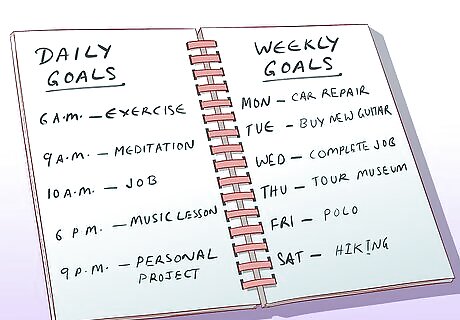 Take time to strategize. If you have the early morning burst of energy, you may want to jump right in to work before it runs out. It will be worth your while to use a few minutes of this energy to plan out your day and beyond, though. Before your focus becomes clouded by all the little things that come up during a workday, plot out what you want to accomplish that day and how you will do so. Prioritize your tasks, and budget your time accordingly. Don't just focus on the short-term, however. Think about how your daily plan fits into your larger monthly, yearly, and even career goals. Are you budgeting your time in the best way to get that promotion, or to graduate a semester early?