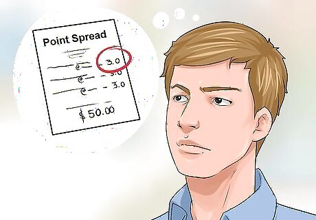 Learn the basics of spread betting. Another common type of bet has to do with something called the "spread" or "point spread." In this type of betting, one team is favored to win the game by a certain number of points. If you bet on the favored team, it must win by this predetermined number of points (the spread). If it doesn't clear this hurdle, your bet loses, even if the team itself won. Conversely, a bet placed for the team predicted to lose will win if the other team can't make the minimum score (or "cover the spread"). For example, let's say that Team A is favored to win by 6 points over Team B. You place a bet on Team A, but they only win by 3 points. In this case, you lose your money even though Team A won the game. If you had bet on Team B, you would have won money even though Team B lost the game.