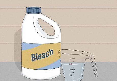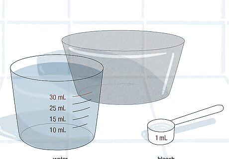 Create a bleach and water solution. In a small bowl, mix 1 part bleach to 30 parts water. Swirl the solution around a bit with a spoon, so that it is fully mixed. Just make the minimum that you think you’ll need and re-mix if you need more.
