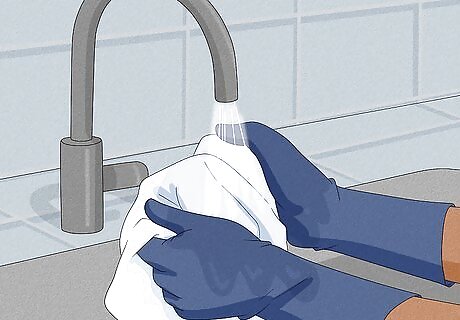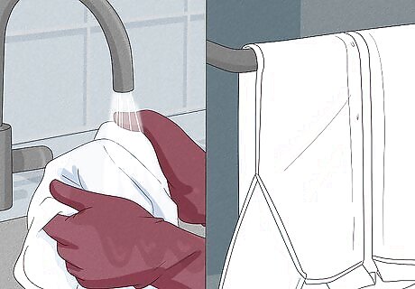 Rinse the clothing off with cold water after 15 minutes. While wearing gloves, pull the drain on the sink or carefully transfer each piece of clothing from the basin to a sink for rinsing. Turn on the cold water tap and hold each item under it. This helps to rinse the chemicals away.