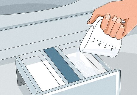 Pour detergent into the machine. Use the same amount of detergent that you would normally use for a load of this size. The detergent will help to remove any dirt or grime from your clothing. Pour the detergent directly into the center barrel of the machine.
