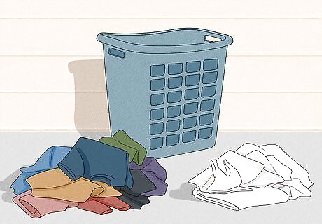 Separate out all white clothing and linens. Go through your laundry and place all of the white clothing items into a stack. Only clothing pieces that are completely white should be separated out. Only include pieces of clothing with colored stripes or designs if you are using color-safe bleach.