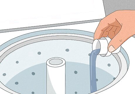 Pour bleach into the washing machine dispenser. This is usually a small, enclosed space located on the upper lip of the machine. After you’ve added the bleach, the machine will release it into the wash cycle as the water heats up. If your machine does not have a built-in bleach dispenser, simply pour the bleach directly into the wash water after the cycle has begun before adding your clothes. Wait a few minutes to let the bleach soak into the water and then put your clothes inside.