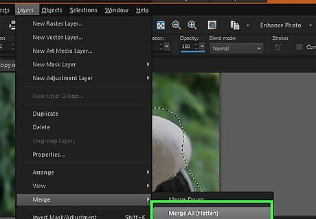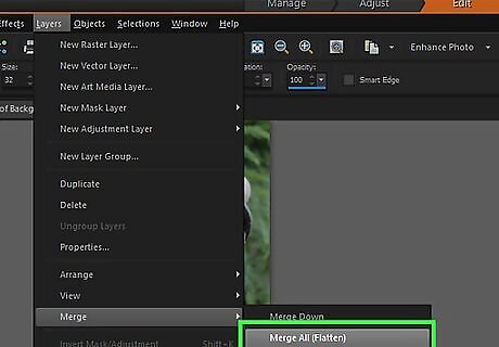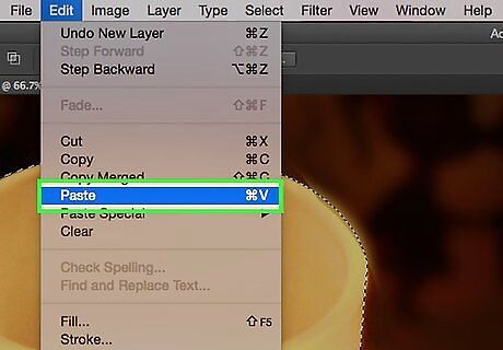 Paste the foreground selection over top of the existing image. This will create a new layer on top of your original one. Usually, this will paste the copied image directly on top of the original one, which means it might not look like anything has changed. Look at your Layers tab (usually in the bottom right-hand corner) to see if a new layer has appeared. If this "Layers" toolbar is not visible in Photoshop, go to Window and select in Layers the drop-down list. If necessary, use the Move tool, which looks like a cursor arrow, to drag the newly pasted foreground on top of the existing image so that they match.