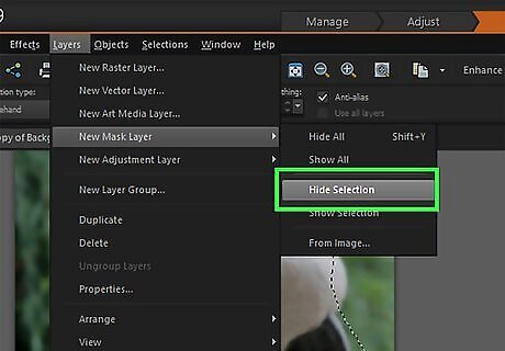 Select Masks > New > Hide Selection. The subject of your photo will disappear from the top layer, revealing the intact image from the layer underneath.