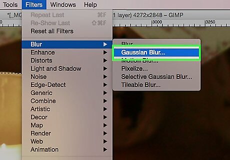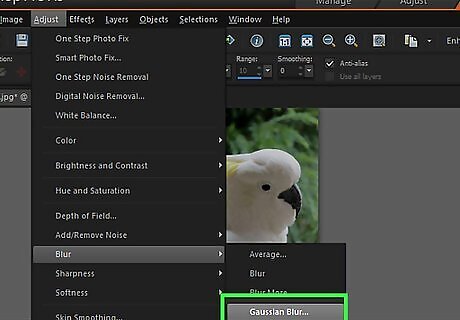 Select Adjust > Blur > Gaussian Blur. This will blur the entire image; you’ll work backwards from here. Play around with different blur radii to create the background effect you want. The larger the radius, the blurrier the image, so if you’re going for a subtle effect, aim low. For example, if you want the background to be very soft and only somewhat identifiable, try a radius of 10. If you want your background just barely blurred, use a radius of .5 or 1. Make sure you’re working on the top layer when you add the blur.