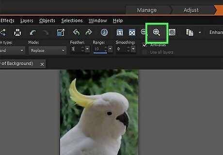 Determine which areas you want to stay in focus (the foreground), and what areas you want to have blurred (the background). Set the zoom to see the entire image on your monitor; this will help you get an idea of where to make your selections.