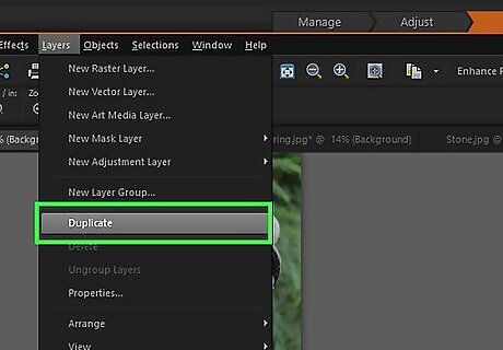 Select Layers > Duplicate. This will stack a second, identical layer over your original image.