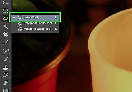 Select the Lasso Tool from your tool palette. You’ll use this to select the image(s) in the photo that you want to distinguish from your blurred background. Choose the selection type based on what is most suitable for your particular image. Ex.: If the image you want to emphasize has very straight edges, right-click to change the lasso to Polygonal, which will create straight lines between the points you click. If there’s a sharp, clear edge between the background and the image you want to emphasize, change the lasso to Magnetic, which will find the edge for you.