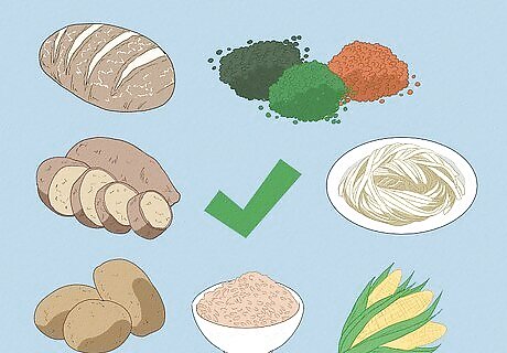 Shun the simple carbs and embrace the complex carbs. Complex carbohydrates are absorbed by the body differently than simple carbohydrates. Simple carbs raise your blood levels quickly, causing a spike in insulin, which drops after a while. Complex carbs are absorbed more slowly by the body and therefore avoid the massive peaks and troughs brought upon by simple carbs. Complex carbs include: Legumes like peas and lentils Whole grain breads Whole grain pastas Brown rice Starchy vegetables like sweet potatoes and parsnips Simple carbs include: Yogurt Fruit juice "Normal" pasta Cakes, candies, and other refined sugar products White bread and white rice, while not technically simple carbs, are absorbed by your body in a similar way.