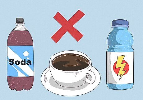 Avoid caffeinated foods, especially energy drinks. Caffeine suppresses serotonin, which could also help explain why it's a hunger suppressant as well. Energy drinks contain large amounts of sugar, which the body processes quickly, but which produce an energy-zapping low after the insulin has finished surging. If you have to drink caffeinated products, wait until after you've eaten, doctors recommend.