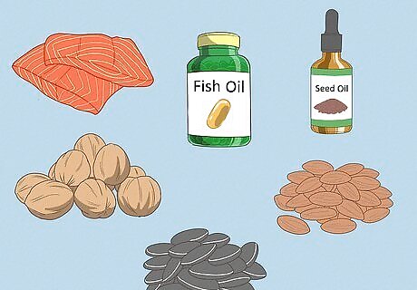 Eat healthy fats, such as omega-3 fatty acids. Omega-3 fatty acids are hypothesized to affect the functionality of serotonin in the brain. People with low serotonin levels commonly have low DHA levels, which is an essential building block in the brain, and which needs to be replenished with foods such as fish oils, which are high in omega-3 fatty acids. Look for omega-3 fats in: Fish, such as salmon, and fish oils Nuts, seeds, and seed oils, such as flaxseed oil