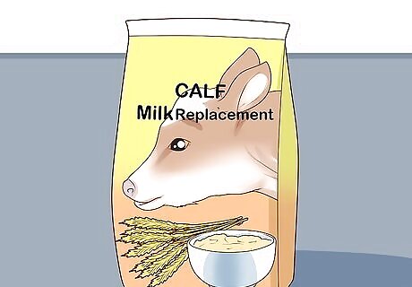 Feed your calf only high quality milk replacement formula and grains. Feeding your calf high quality food is the best way to prevent vitamin deficiencies. Formula that is at least 25% protein and fresh grains usually provide adequate amounts of the necessary vitamins and minerals calves need to remain healthy.