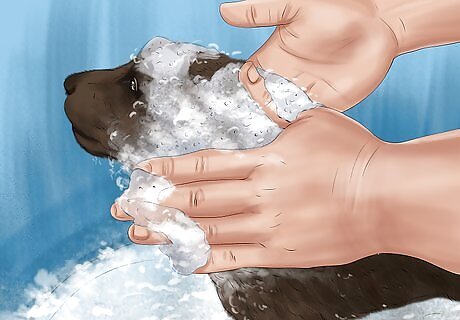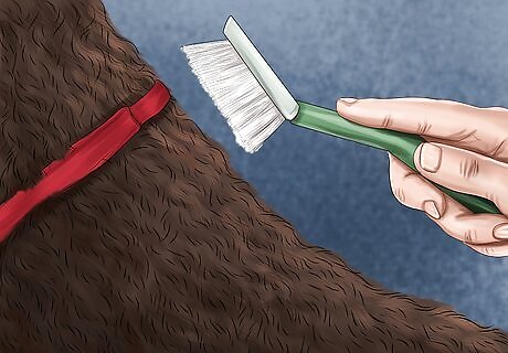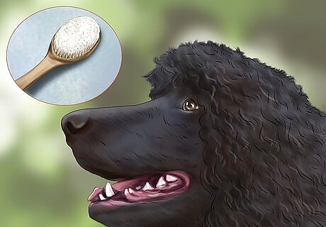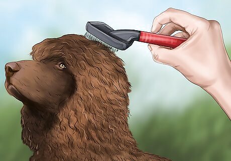 Give them a general brushing. Use a coarse scrub brush with natural bristles to comb once gently through the entire coat. This will remove superficial dirt and loosen up the coat for the next stages of brushing. Since Irish water spaniels have long and soft hair, you should use a scrub brush that has long, widely spaced, and soft bristles.