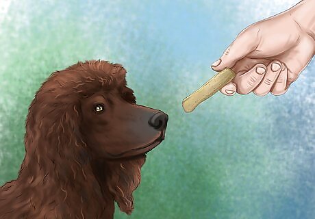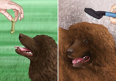 Reward them with a treat. After you’ve finished, be sure to reward your dog with their favorite treat, pet them, and tell them that they were good. Concluding the brushing session this way will make your spaniel less likely to be afraid to be brushed the next time.