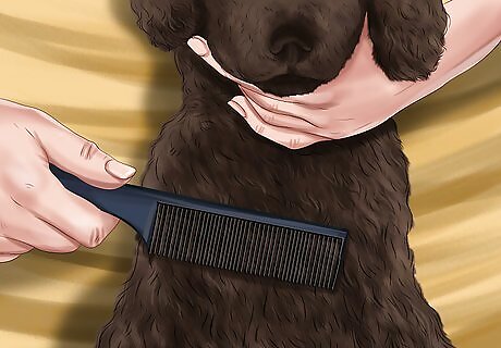Check for matting. A good way to locate matted hair is to comb through the coat with a wide-tooth steel comb. If you come across any tangled, clumped, or matted hair, first try to gently tease out the tangle with the steel comb. Whatever matting remains can be separated with a de-matting comb or mat separator. And adding some vinegar to the matted or tangled area can loosen it and allow you to comb it out. Vinegar can sting if your dog’s skin is irritated. Dilute it with some water first if your dog has any skin irritations, scrapes, or sores.