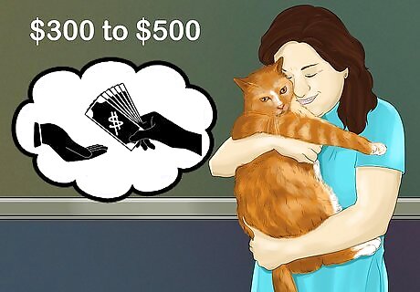 Determine the adoption fee. You need to make sure to factor in the adoption fee of your cat, if there is one. This is important, as fees could range from small to large. Make sure to talk to the shelter or breeder before finalizing your budget. You may be able to adopt a cat for free from a local animal shelter. Fees for purebreds, like Siamese cats, can top $300 to $500.