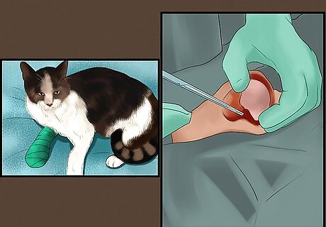 Plan for emergency surgery at some point. While most cat owners don’t want to think about it, you should budget for the eventuality that at some point in your pet’s life they will have a medical emergency. Some emergencies may include: Broken bones after being hit by a car or falling from a tree. Surgery to remove tumors. Kidney stone removal.
