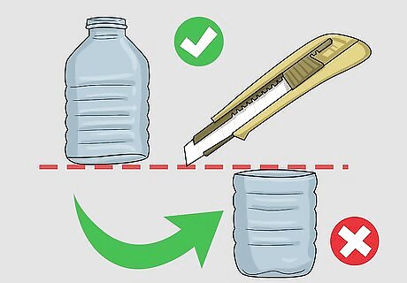 Cut off the bottoms of each bottle with the blade.
