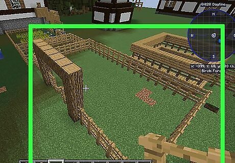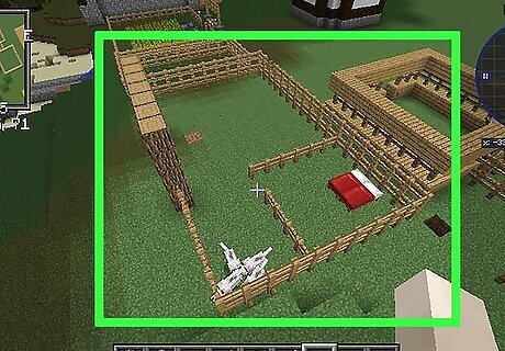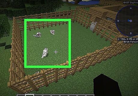 Put your wolf in a temporary den. This way it won't wander off while you make its real house. The easiest way to make a pen is to build a 10x10 square from fences around your wolf, then attaching the wolf to one of the fences with a lead. Make sure you put a fence in this pen, so you can go and get your wolf when you're done.