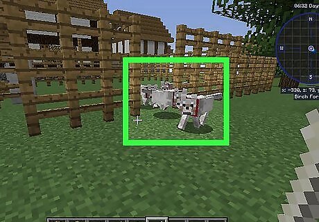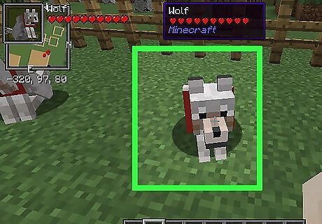 Get a dog. In creative mode, you can spawn a wolf and it will automatically be tamed, but if you're in Survival, you'll need to find a wolf and tame it Right click on the wolf to give it the bone. If you see the hearts rising from the wolf, you've done it right. If the wolves eyes go red, you've attacked it by mistake. Feed the wolf enough times, and a shiny red collar will appear on your new pet's neck. When you right click on the wolf, it should sit or stand. When it's sitting it stays put for you while in the standing position the wolf will follow you.