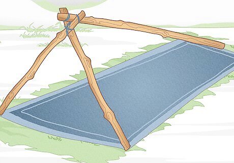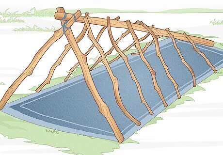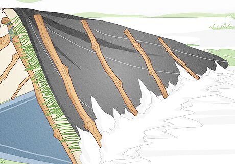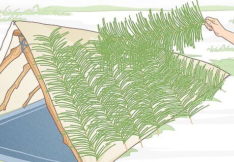 Weigh down any materials you cover the frame with. This will keep them from blowing away in the wind. Mud, branches, and even snow will hold the materials down. Also, snow is a natural insulator.