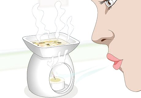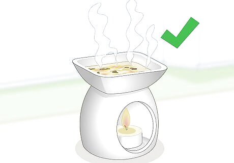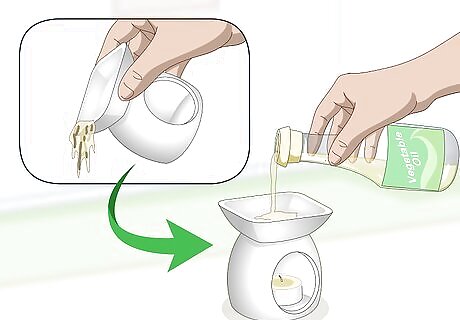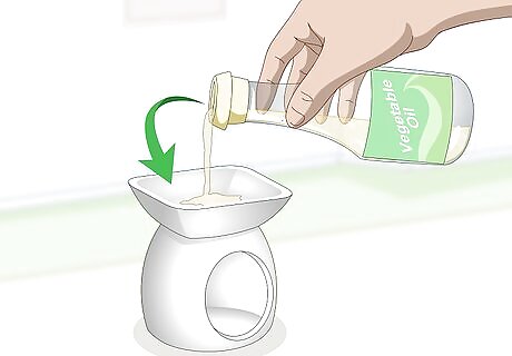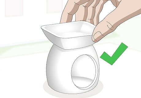 Get an aromatherapy oil warmer. There are 2 different types of oil warmers that you can use: ceramic and glass. The ceramic oil warmers are all 1 piece while the glass ones are usually a glass dish set on top of a metal or ceramic stand. You can purchase these in just about any store that sells candles and candle stands. The ceramic oil warmers are typically labeled for wax cubes or wax melts, but they will still work. The set up is still the same.