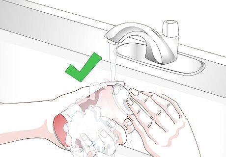Find an empty soda can and clean it. Fill the soda can with water and 1 pump of liquid dish soap or hand soap. Slosh the water in the can, then dump it out. Rinse the can out when you are done. You can also use other types of drink cans, but be aware that they may be made from thicker metal and will be harder to cut. You need to use a drink with a bowl-shaped bottom. Do not use a regular can, like from canned beans or soup.