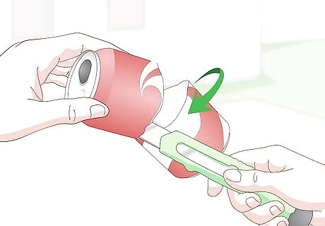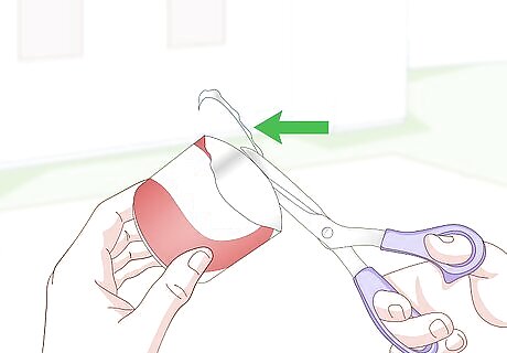 Cover the cut edge with masking tape. Wrap a strip of masking tape around the cut edge of the can. Make sure that the bottom half of the tape is on the can, and the top half is sticking out over the cut edge. Carefully fold the excess tape over the cut edge and into the can. You can use painter's tape, a narrow strip of duct tape, or even electrical tape. This tape will cover up the cut edges of the can and prevent it from accidentally cutting you.