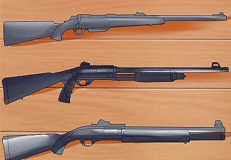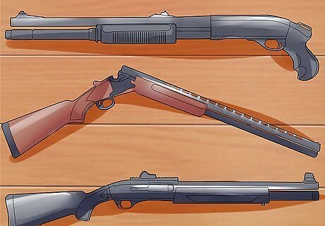 Buy a shotgun for hunting birds and sport shooting. Shotguns are also long guns, which look much similar to rifles, but feature a lot more recoil and fire a different type of ammunition. While rifles shoot bullets, shotguns shoot plastic shells that are loaded with shot, tiny pellets that expel from the shell in scattered pattern. Shotguns are used for hunting birds, particularly duck, pheasant, and geese, as well as for shooting skeet and other types of sport shooting and home defense.