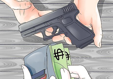 Know your rights when it comes to private purchases. In some places, it's legal to buy used guns from an individual in the same state, who will not require you to submit to a background check before making the sale, or declare the sale. It is, however, illegal for private sellers to sell to individuals who don’t fit the federal requirements for gun ownership, so know that the lack of oversight in no way excuses you from Federal regulations. Owning a gun will still be illegal if you buy it privately and don’t meet the regulations. If you purchase a gun privately, you need to document the sale yourself by procuring a bill of sale from the county clerk’s office in your area, and it’s probably a good idea to register the firearm locally. This will ensure that there’s a traceable record of the purchase. If your locality does not require that your gun be registered, you are not required to do so by federal law. Be sure to check your local and state laws about private party gun sales prior to purchasing a gun from an individual. If you are purchasing via online sale, especially if the gun is from another state, you will probably need to get an FFL dealer involved in the transaction to ensure the sale is legal.