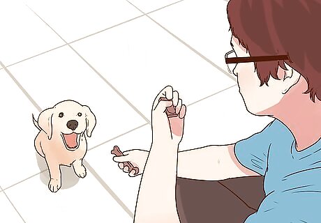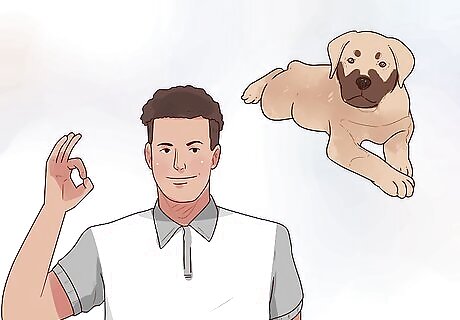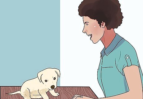 Play with the puppy to see if he is a good fit. Make sure you have a good connection with the puppy you have chosen before you seal the deal. If the puppy shies away or tucks his tail between his legs when you approach, he may not have the best temperament to become a pet. If you like the puppy's personality but aren't sure how he'll get along with your children or other pets, you may be able to foster the puppy to help you decide. Keep in mind that puppies also choose their owners. The puppy you are interested in will probably be paying attention to you see if he is comfortable around you.