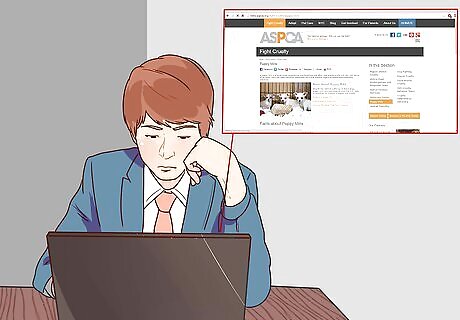 Stay away from puppy mills! Puppy mills are notorious for mass breeding of puppies in deplorable conditions. Breeders who run puppy mills are typically more concerned with making a profit than practicing responsible breeding practices. Puppies bred in this type of environment may have genetic abnormalities that could lead to physical and emotional disorders that, unfortunately, you won’t discover right away. When you visit a breeder, take a close look at the conditions. If the dogs there look dirty, skinny or unhealthy, do not purchase a puppy there. If a breeder is reluctant to show you his or her entire premises, it is probable that he or she is running a puppy mill and does not want you to see the poor conditions in which the dogs are being bred and raised. If a breeder does not ask you a lot of questions and takes a hands-off approach to the puppy's care after he or she has sold it, you should suspect that he or she is running a puppy mill. Breeders who claim to breed a large number of purebreds or "designer" breeds are likely not telling you the truth and are probably running a puppy mill. The dogs are most likely not purebred or a designer breed. You might want to report a puppy mill to the authorities. You can fill out a report at https://www.humaneworld.org/en/forms/report-puppy-mill or call 1-877-MILL-TIP if you suspect a breeder you visit is harming dogs and puppies.