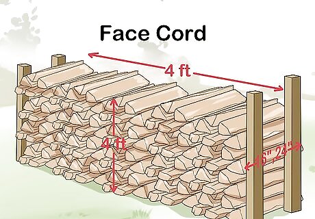 Get a face cord if you want to make indoor fires. A face cord of firewood is approximately 4 ft (1.2 m) long and 4 ft (1.2 m) high with a depth that varies between 16 and 24 in (41 and 61 cm). It is around ⅓ the size of a full cord, making it a more reasonable purchase for families interested in starting occasional indoor fires. Thanks to their shorter depth, face cord logs should fit into any average-sized fireplace.