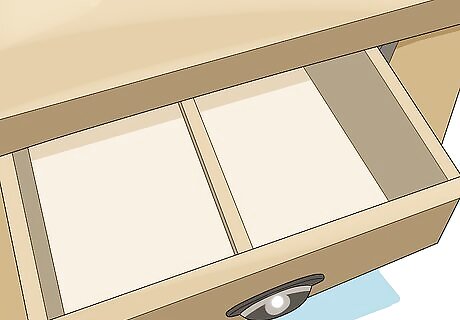 Choose a convenient location to store your wood in. When the weather gets cold enough to warrant a fire, hauling heavy lumber around can be a stressful experience. To avoid this, try to find a firewood storage location that is as close to your fireplace or fire pit as possible. As long as the area is dry, you can keep you lumber in just about anything, including: A large shelf or niche An empty chest or drawer An unused closet An outdoor platform A storage shed